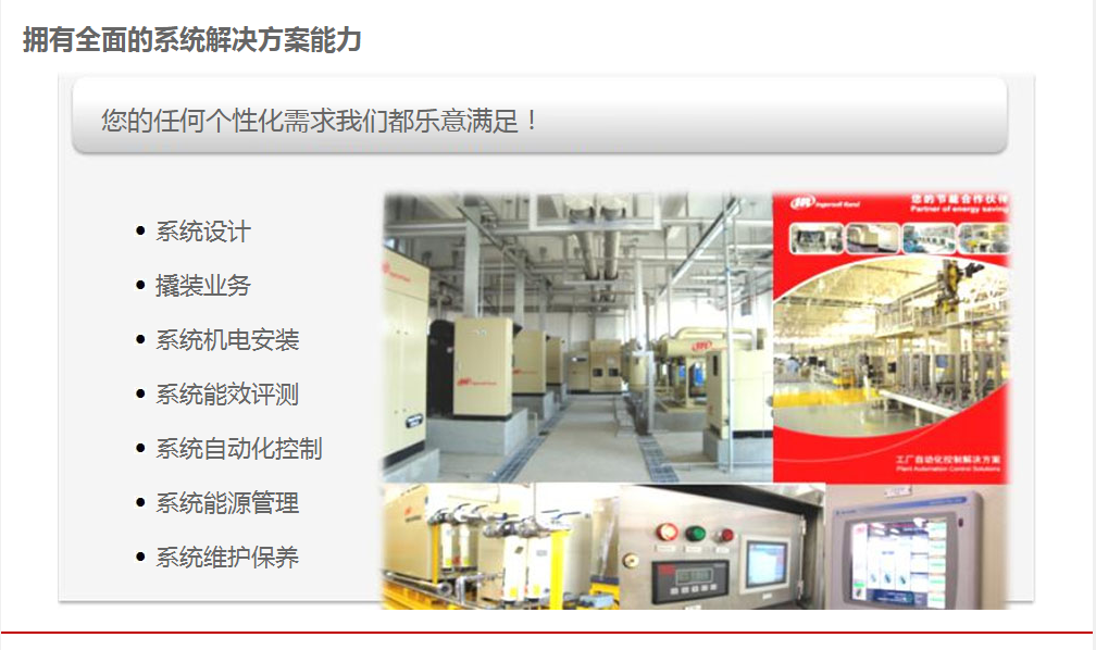 •        濟南銳博特機械設備有限公司是英格索蘭空氣壓縮機的授權代理商,代理銷售美國英格索蘭全系列的空壓機及后續處理設備。公司自成立以來,經過公司全體同仁不斷努力,開拓創新,以優良的技術、完善的售后服務,使得公司贏得了一個又一個的誠心客戶。我公司擁有多名專業的銷售及售后服務人員,為客戶提供空壓系統的售前、售中及售后的全方位優質服務。另公司有多名具有英格索蘭壓縮機授權服務證書的服務工程師,能維修和保養國內外各種品牌空壓機,公司各種國內外品牌空壓機配件庫存齊全。