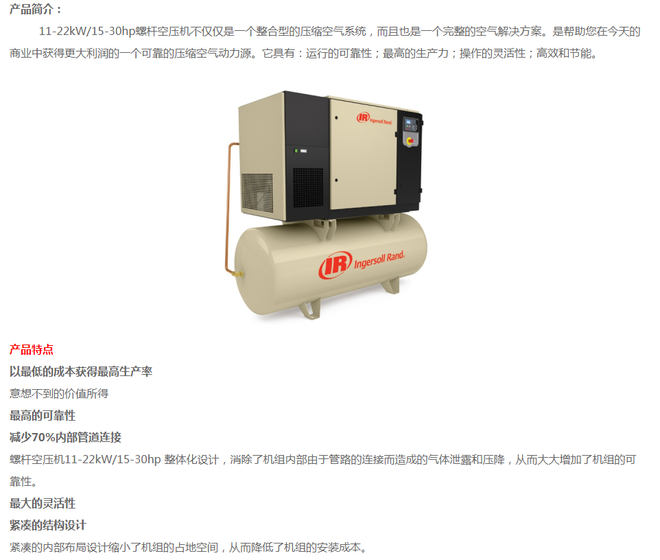 英格索蘭螺桿式空壓機(jī)R系列11-22kw