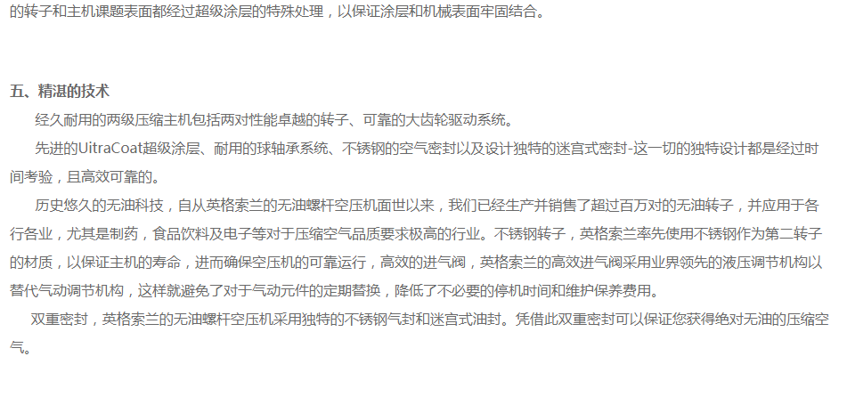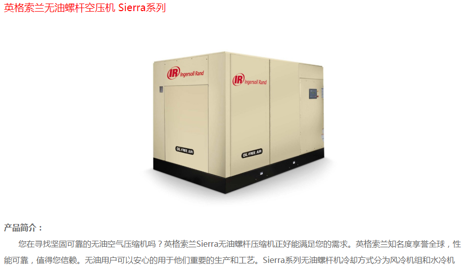 •        濟南銳博特機械設備有限公司是英格索蘭空氣壓縮機的授權代理商,代理銷售美國英格索蘭全系列的空壓機及后續處理設備。公司自成立以來,經過公司全體同仁不斷努力,開拓創新,以優良的技術、完善的售后服務,使得公司贏得了一個又一個的誠心客戶。我公司擁有多名專業的銷售及售后服務人員,為客戶提供空壓系統的售前、售中及售后的全方位優質服務。另公司有多名具有英格索蘭壓縮機授權服務證書的服務工程師,能維修和保養國內外各種品牌空壓機,公司各種國內外品牌空壓機配件庫存齊全。